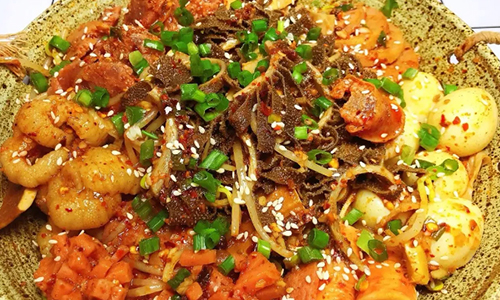 或許你聽說過冒菜,但干拌冒菜或許比較陌生,其實這也是冒菜一種延伸出來的做法。與傳統冒菜異曲同工但有些許不同,干拌冒菜是底料在鍋中,食材煮熟后不要鍋底,直接加入辣椒面、蒜末、香油、紅油等拌著吃的。
